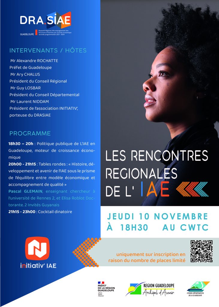 Le séminiare IAE 2022, tenu le 10 novembre, a réuni des personnalités telles que le Préfet de Guadeloupe et la 1ère Vice Présidente du Conseil Régional et La vice Présidente du Conseil Départemental pour discuter de la politique publique de l’IAE et de son rôle moteur dans la croissance économique.